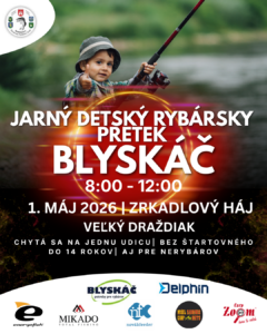srdečne vás pozývame na Jarný detský rybársky pretek Blyskáč, ktorý sa uskutoční 1. mája 2026 v lokalite Zrkadlový háj – Veľký Draždiak.