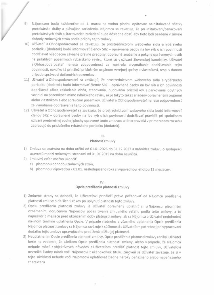 Každoročne do 31. januára bude zverejnení kalendár športových podujatí, kalendár má byť zverejnený pri prístupových komunikáciách k revíru aj na webe.